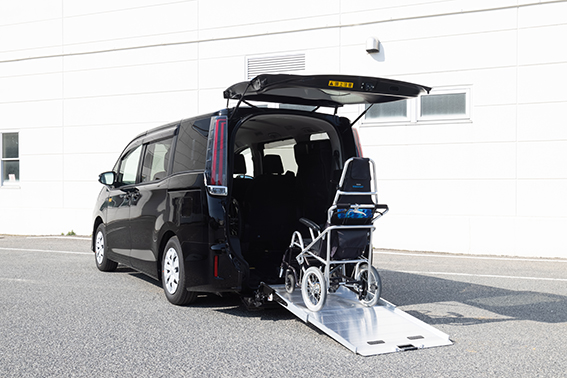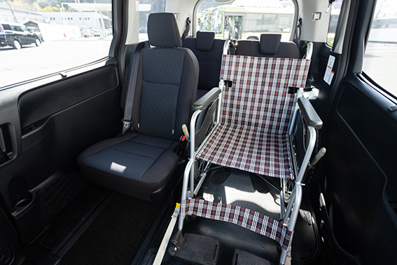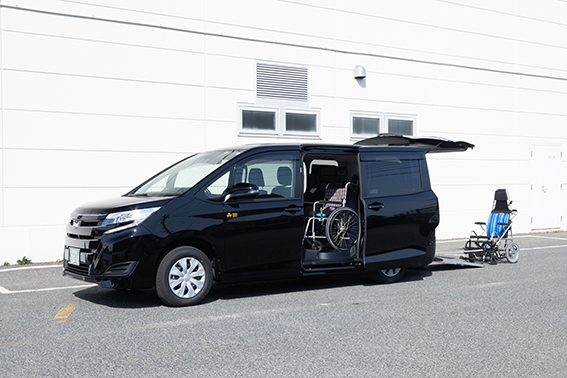 当社では新たに、車いすのままご乗車できるワンボックスタイプの車両を導入いたしました。